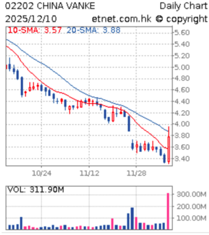 12/11財務爆雷的萬科,竟然拉了一個大紅棒,接下來到了年底,看看今天收第二低點。