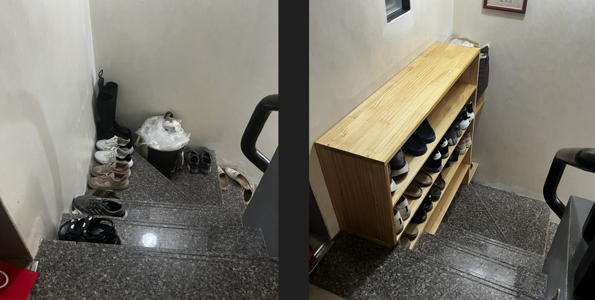 上圖為原本的狀態,下圖為拆解丟掉鞋櫃後的狀態。
