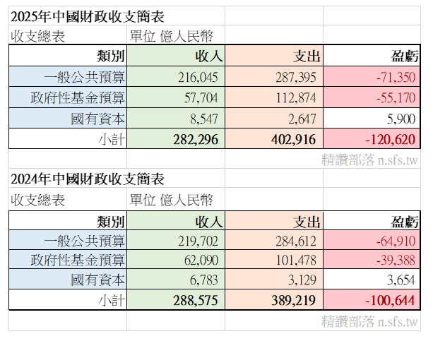 中國2025年的財政惡化速度更加驚人,又再暴增2兆元,年赤字達12兆大關。