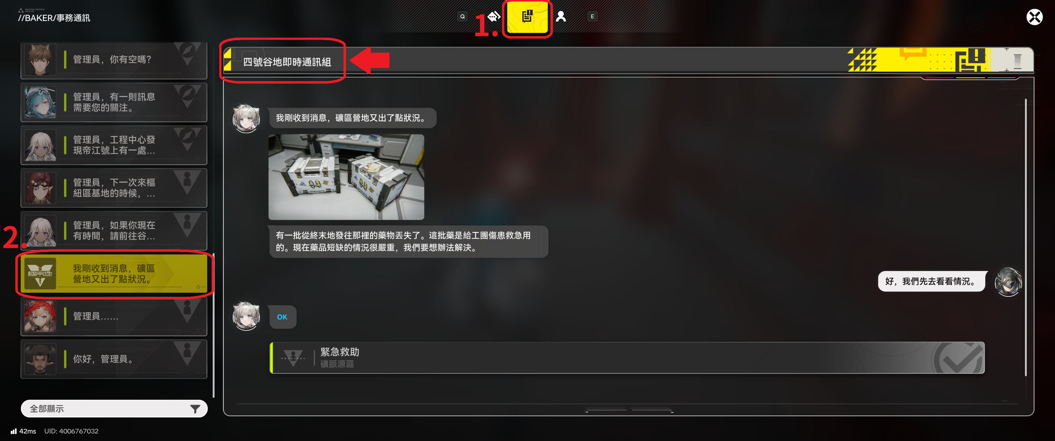 接取方式也很簡單,當主線推進到一定的進度之後就可以在 BAKER 內接取。
